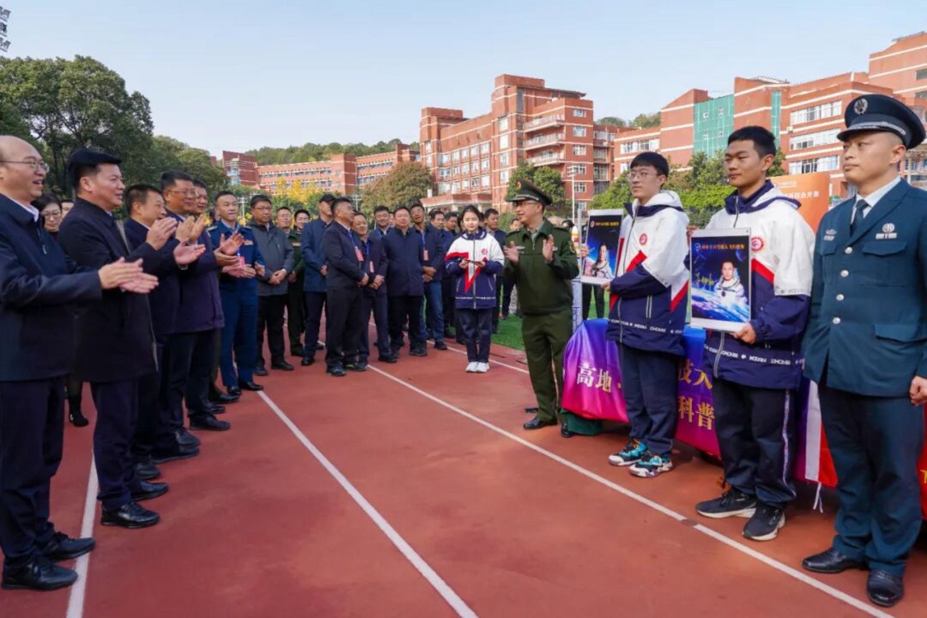 活动尾声,四川招生宣讲服务团队与智慧火箭俱乐部向绵中优秀学生代表赠送神舟十五号航天员邓清明、神舟十六号航天员朱杨柱的签名照,进一步激发同学们的从军热情与报国志向。