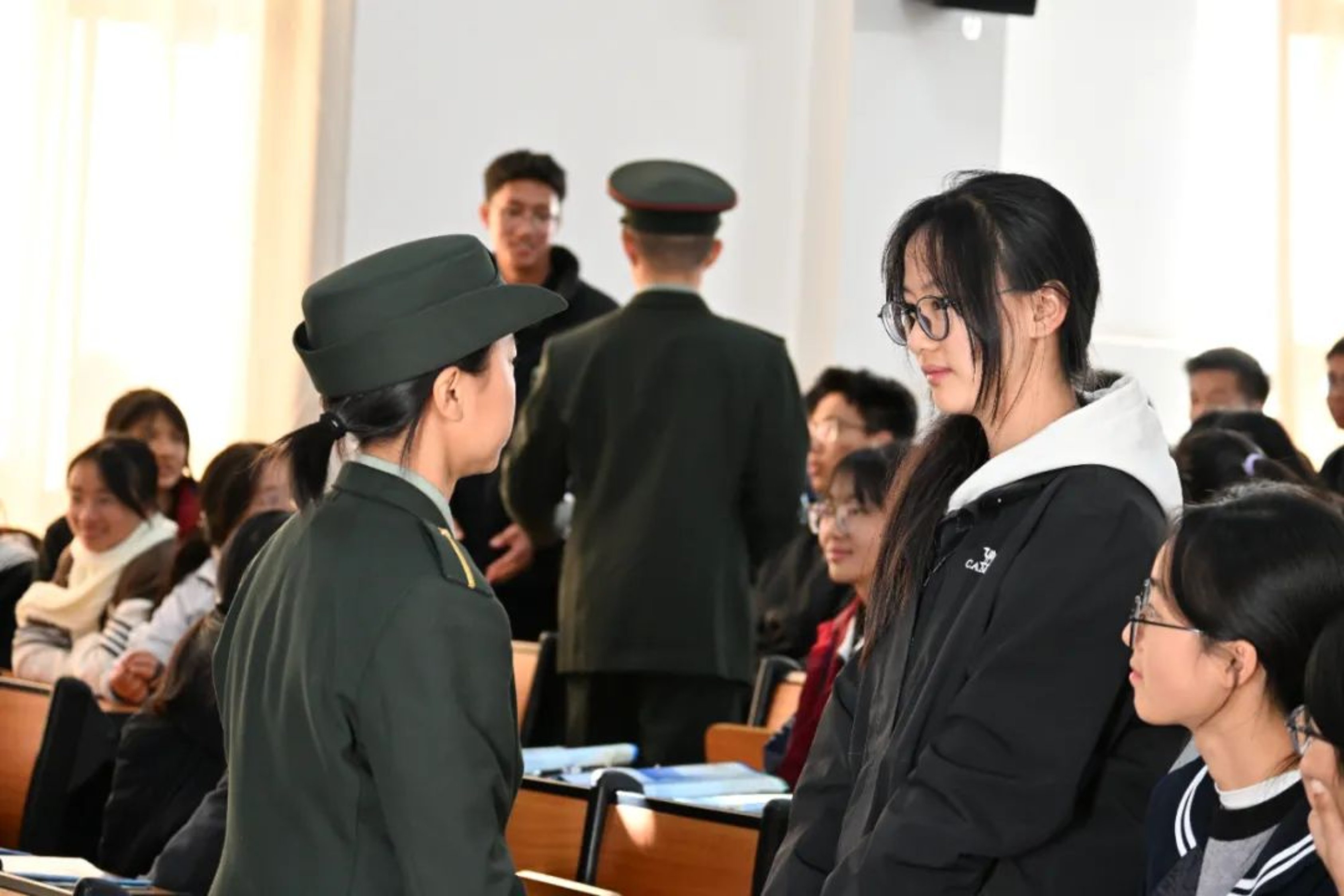每一个关于国防科大的故事,每一张展示校园生活的照片,都能引发台下的阵阵惊叹。我看到他们眼中的光,那是对知识的渴望,对国防事业的向往。在答疑环节,面对他们抛出的一个个问题,我感受到他们对未来的期待。我耐心解答,用自己的经历告诉他们,国防科大不仅是知识的殿堂,更是梦想的孵化地。