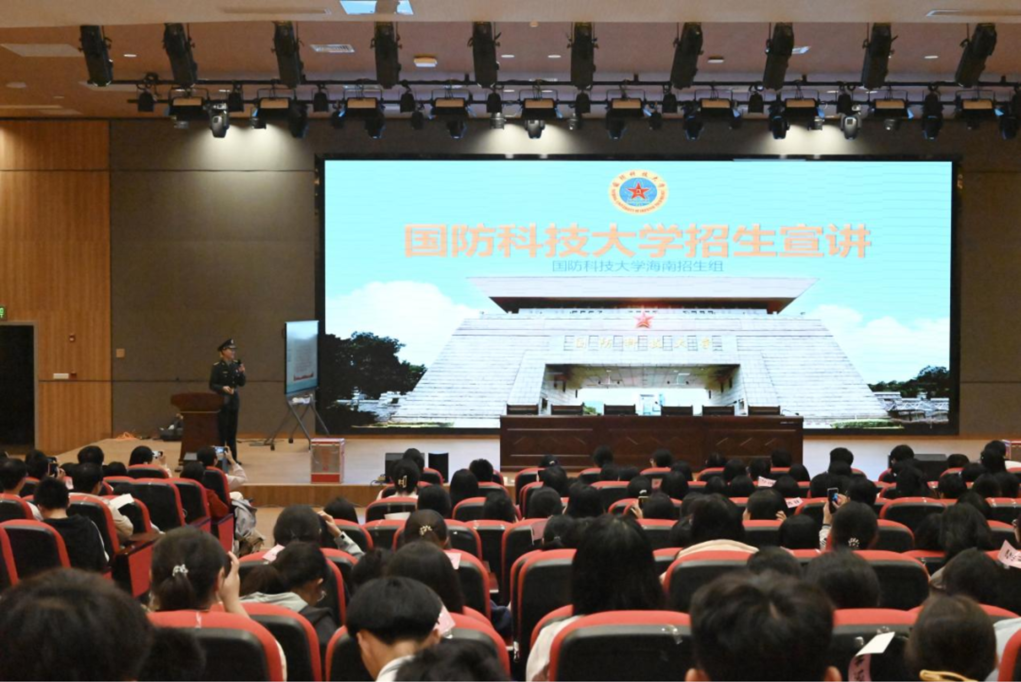 近期,学校4名本科学员回到母校海南师范大学附属中学开展宣讲活动。宣讲团成员围绕军校报考流程、军检具体要求、科大训练日常等方面进行了详细的介绍,并耐心解答了高三学生的疑问,加深了同学们对国防科大的认识。