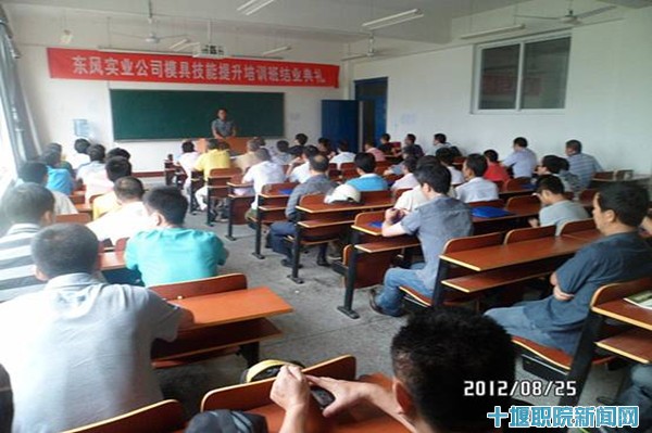 新闻网讯(学生记者 陈伦龙)经过为期两个月的培训,东风实业有限公司2012年冲压模具技能提升培训班66名学员通过考核,圆满完成学习任务。8月25日下午,该班结业典礼在机电工程系教学楼6302教室举行。机电工程系主任李军、东风实业有限公司人力资源部领导朱青、部分培训教师及培训班学员参加了此次典礼,机电工程系副主任许明涛主持结业仪式。
