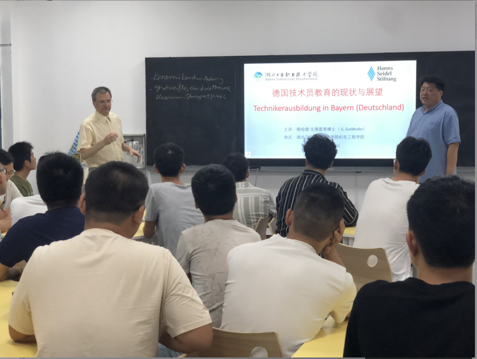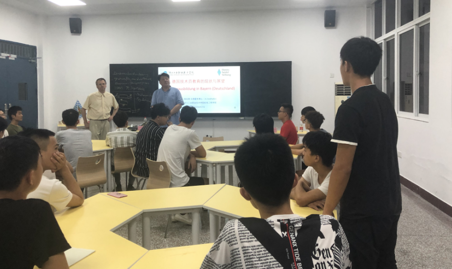 (通讯员:叶姿)8月27日下午,欧冠投注官网入口邀请来自德国因戈施塔特技术员学校、奥迪公司的格哈德·戈德霍弗博士向中德技员班同学举行了《德国技术员教育的现状与展望》主题讲座,学校中德合作项目特聘张晨阳教授,机械设计与制造专业全体教师及2017、2018级中德技术员班学生代表参加了此次讲座。