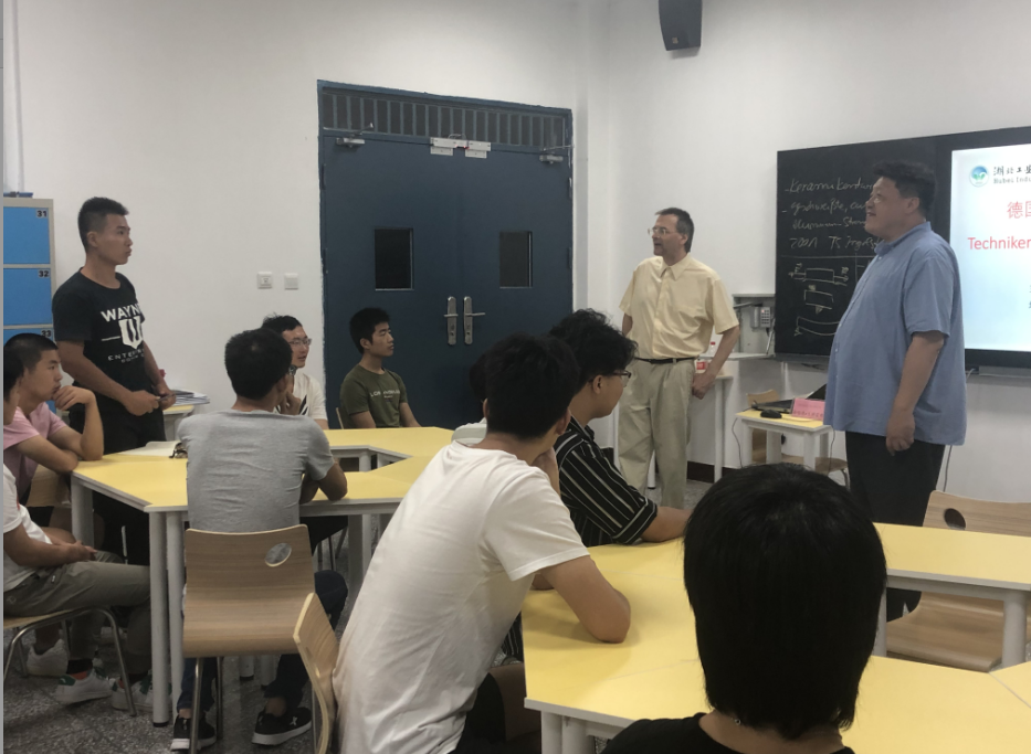 会上欧冠投注官网入口副院长薛嘉鑫对戈德霍弗博士做了简短的介绍,谈了此次讲座的目的和意义:强化同学们的学习意识,珍惜中德技术员班学习的机会,并为未来的中德合作项目打下良好基础。格哈德·戈德霍弗博士就三个方面进行了深入讲解。首先介绍的是他个人的职业经历以及在因戈施塔特技术员学校的教学经历,并阐述了自己把在奥迪技术中心的工作经验与教学相结合的实例。学生们对此产生浓厚兴趣,纷纷提出了自己感兴趣的问题,格哈德·戈德霍弗博士也一一对其详细的解答,讲座中交流的气氛十分浓厚。