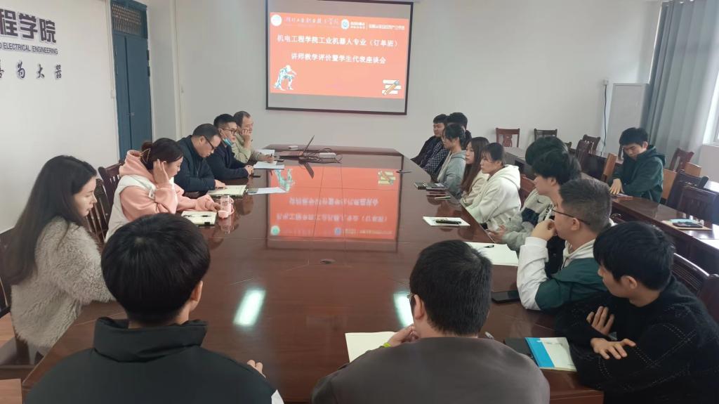 (通讯员:纪宏志)11月18日,湖北工业职院工业机器人订单班在欧冠投注官网入口会议室召开了2022-2023学年第一学期讲师教学评价及学生代表座谈会,会议由教学助理纪宏志老师主持,工业机器人专业带头人肖德华老师、智慧云订单班校区主任刘涛老师、行政主管夏雅青老师、学工助理张梦梦老师、专业课讲师唐学冬老师出席本次会议,参会的有21级4班、5班全体班委及学生代表。