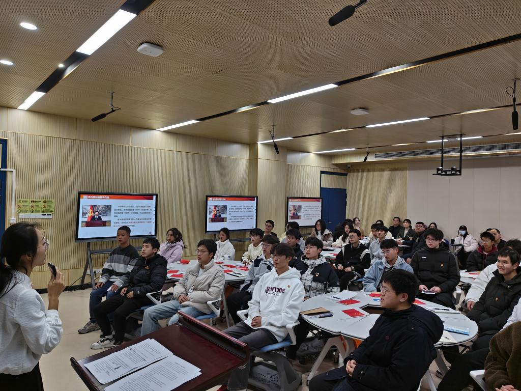 伴随着“我们是五月的花海……”团歌声,主题团课正式开始,由班级团支书带领同学们一起读原著、学原文、悟体会,然后由辅导员赵良晶老师围绕着“奋斗精神的内涵”进行主题授课,她带着同学们从“奋斗精神的内涵”、“为什么要弘扬奋斗精神”、“如何践行奋斗精神”三个角度进行奋斗精神的学习与讨论。在“榜样人物经验分享”环节中,优秀毕业生黄贤老师结合自身经验,与同学们分享个人成长进步的历程,及对奋斗精神的感悟,帮助同学们树立更加积极向上的学习和生活态度。在小组讨论环节中,学生代表以当下热点事件、优秀学长、国家栋梁等奋斗事迹分享了对“青春是用来奋斗”的理解与感悟。伴随着全体同学挥舞着国旗倾情演唱《骄傲的少年》的歌声,主题团课落下了帷幕。最后,由校团委罗书记对本次主题团课进行点评。