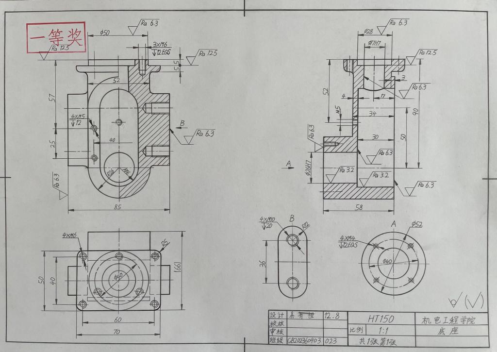 本次竞赛是欧冠官网首次举行机械制图手绘竞赛,2023新生踊跃报名参赛,全院2023级学生共提交260余副手绘机械图纸,经过层层选拔,评选出4名一等奖、9名二等奖、15名三等奖。根据竞赛规程,同学们的获奖等次可对应置换《机械制图》课程成绩。