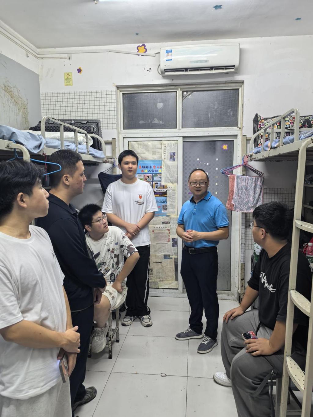 为深入了解新生生活状况、思想动态以及住宿情况,增加新生对校园的归属感,8月31日晚,学院领导、专业带头人、新生辅导员们纷纷来到新生宿舍,传递关怀与祝福。在走访的过程中,院领导对新生们到校表示欢迎,亲切问候新生入校以来寝室生活的适应情况,了解同学们入住寝室后所遇到的各种问题,并及时为新生们答疑解惑,解决困难,提出宝贵的建议。重点强调了人身安全、寝室安全和校园安全,提醒大家在平时生活中务必注意防范电信诈骗等意外事件的发生,同时鼓励同学们在新的环境要以更加饱满的心态去迎接大学生活与学习。新生们也纷纷表态,会尽快调整状态,积极融入机电学院大家庭,不负家长和老师寄予的殷切期望。