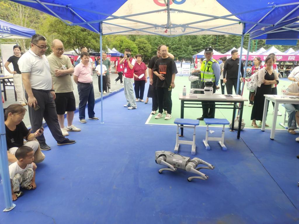 在新生接待现场,新生辅导员们耐心细致地为新生们登记信息、答疑解惑、提供咨询服务。身穿统一工作服的志愿者们各司其职,协助新生在体育馆办理入学手续、搬运行李入宿,“一对一”全程引导新生完成报到事宜。作为今年全校招生专业人数最多的工业机器人专业,迎新现场还向新生和家长展示了机器狗、智能机器人、下棋机器人等高科技产品,引来众多新生和家长围观。结合无人机专业,学院还联合湖北箭飞航空举办了无人机展览,为现场师生讲解无人机专业知识、应用领域和发展前景,现场好不热闹。