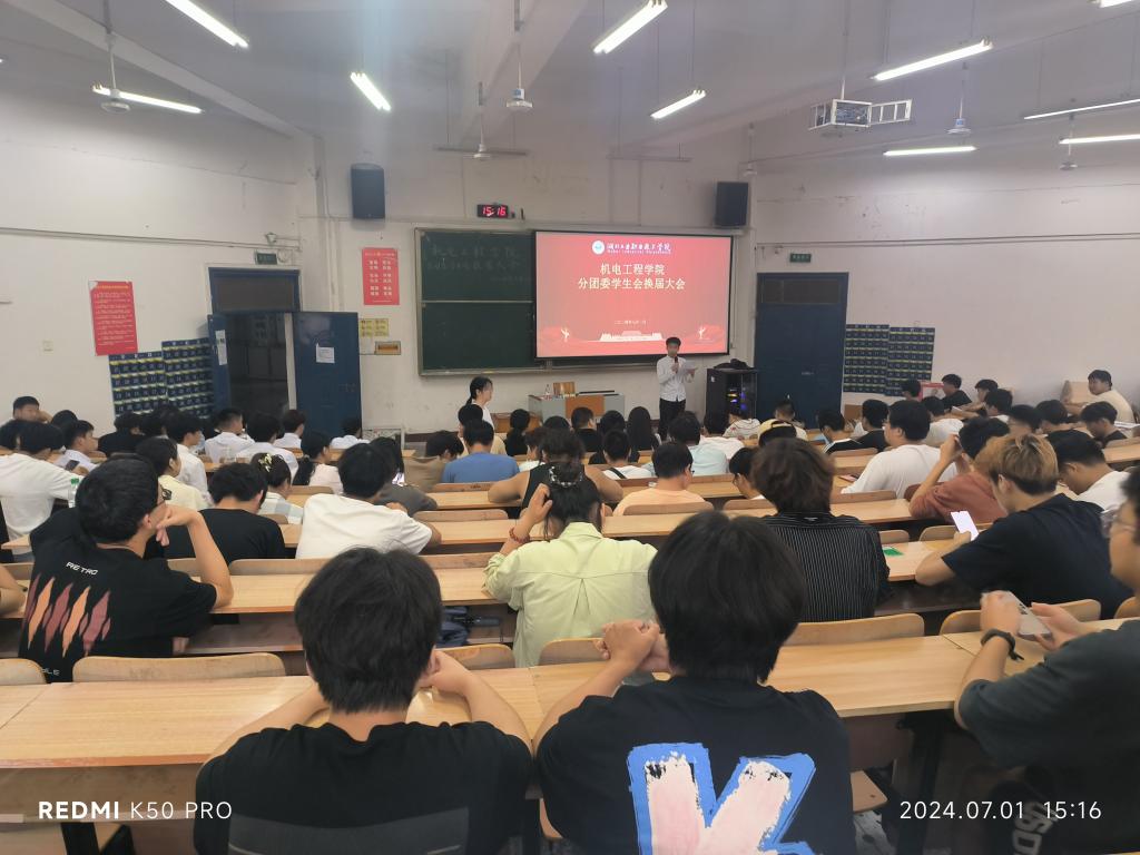 2024年7月1日下午,欧冠投注官网入口分团委召开第25届团代会、学代会暨学生干部换届大会在6209教室召开。学院党总支书记罗英军,党总支副书记郝静,分团委书记乔冠翔,全体辅导员和学生代表参加了此次大会。