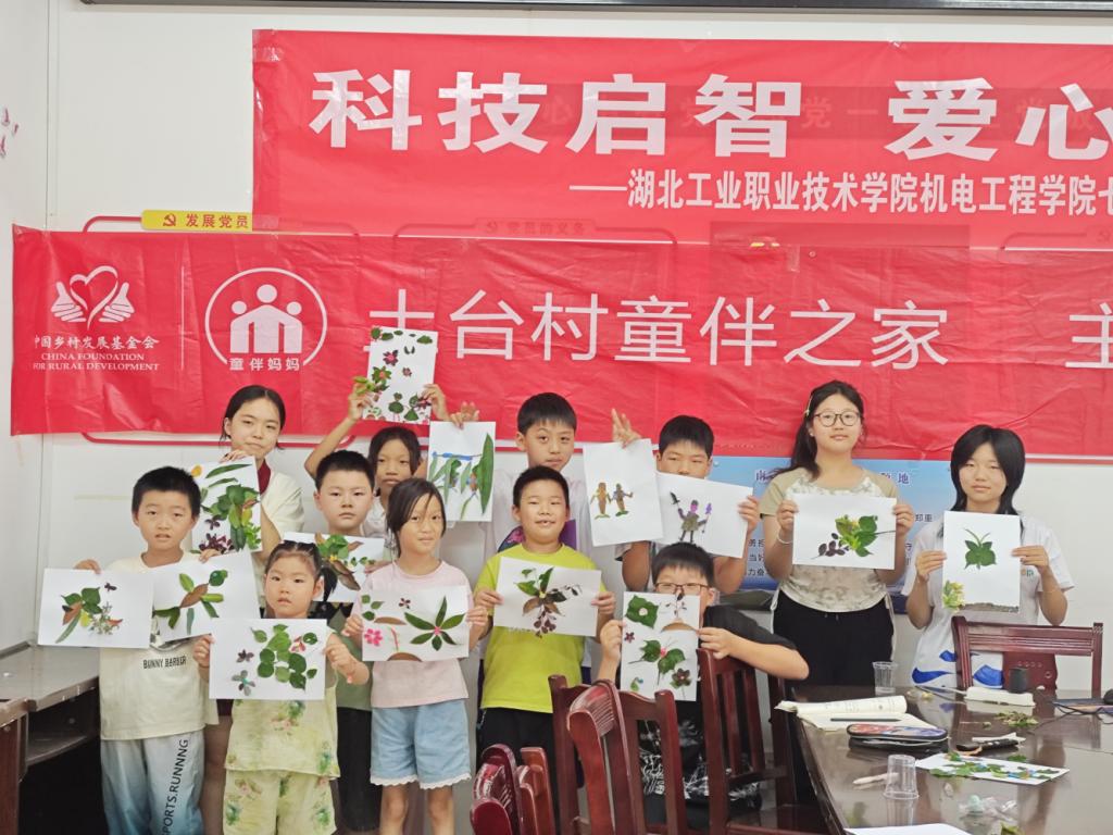 “巧手生花”释放无限创意:村庄的盎然绿意成为天然素材库。在志愿者的引导下,孩子们将收集来的树叶,通过剪、拼、贴的魔法,幻化成翩翩起舞的蝴蝶、优雅开屏的孔雀、憨态可掬的小熊。折纸课上,彩纸在灵巧的小手中翻飞,从千纸鹤到小青蛙,再到复杂的立体花朵,每一步折叠都充满了发现规律的惊喜与创造的乐趣。绘画课上孩子们发挥想象一幅幅“我眼中的机器人”、“我眼中的未来城市”等主题画作跃然纸上。