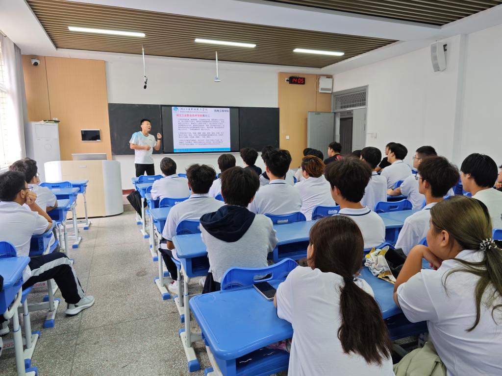 副院长潘强就校企合作与技能竞赛方面进行分享,指出学院与东风汽车集团、湖北三环集团等知名企业建有深度合作,为学生提供大量接触企业实景、掌握前沿技术的机会。他还列举了学院近年来在各类国家级和省级技能大赛中取得的优异成绩,鼓励同学们积极参与竞赛、锤炼专业能力、拓展创新思维。