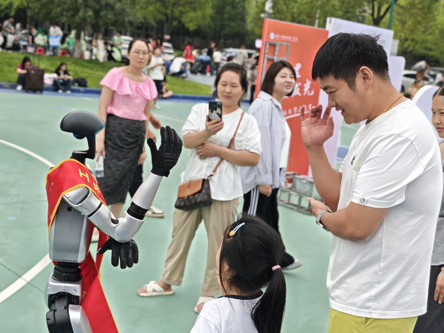 迎新现场师生与机器人互动