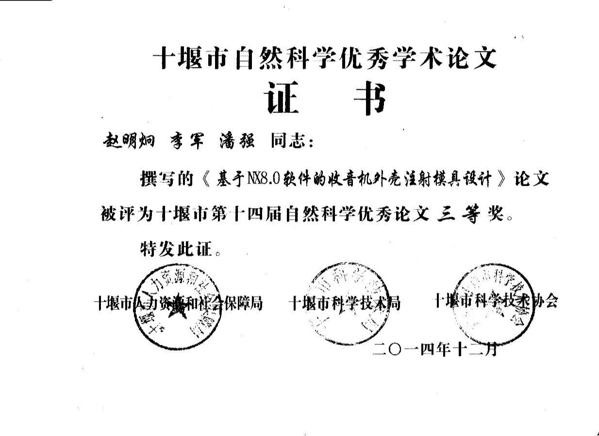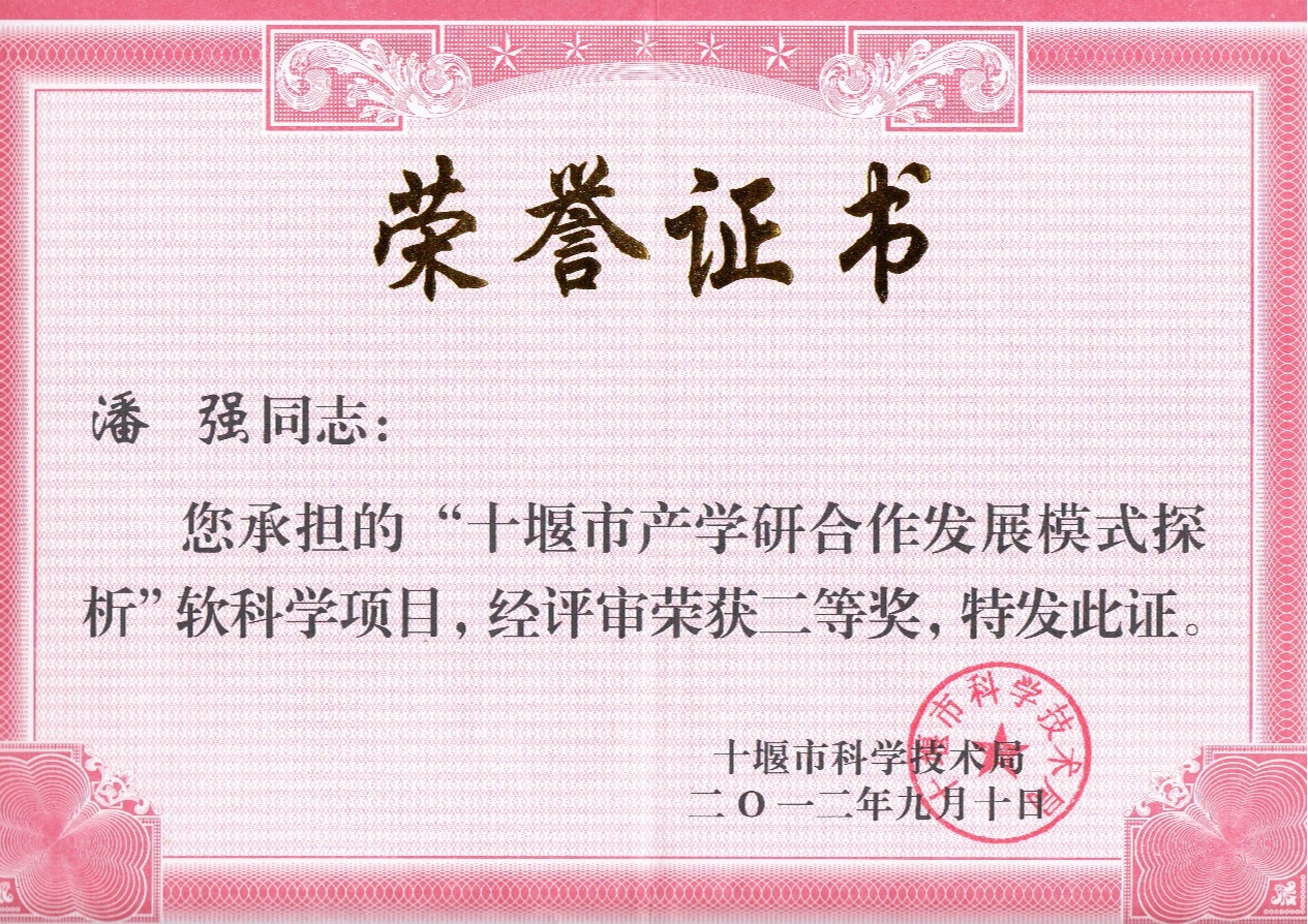 截止到目前,欧冠投注官网入口承担《模具现代学徒制》教育部立项1项,省级三区人才科技特派员项目3项;市级引导性科研项目8项;市级软课题项目8项;院级教科研课题50余项;参与企业技术攻关荣获十堰市科技进步奖一等奖1项、获取专利20余项,公开发表论文40余篇,其中荣获市级自然科学优秀论文三等奖1篇。