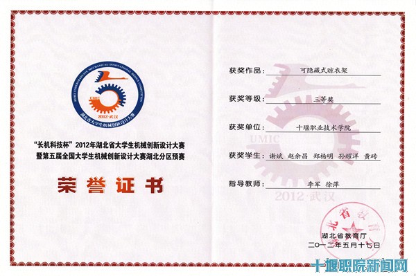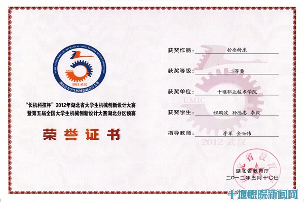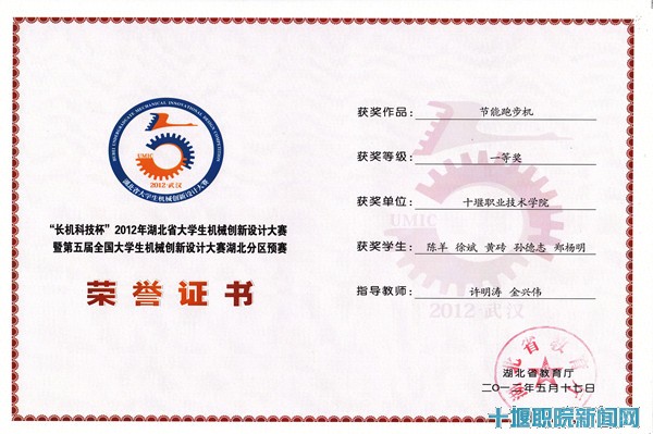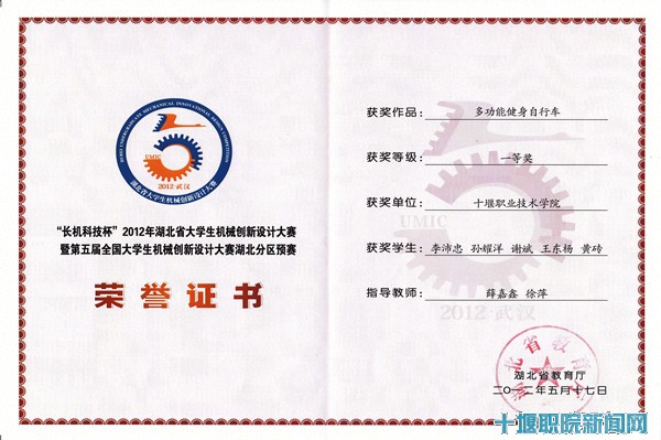 学生在2012年湖北省大学生机械创新设计大赛上获奖作品