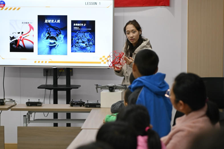 活动中,社区的孩子们仿佛置身于科技世界,无人机科技协会会长陈滋潮为孩子们介绍了无人机的种类及应用,丰富的知识让孩子们兴奋不已,无人机科技协会书记庞丽萍带领小朋友们观看青少年无人机比赛视频等内容,并声情并茂地讲解“足球无人机”知识,增加趣味性和互动性,激发了孩子们对科技的兴趣和对科学的探索欲望。