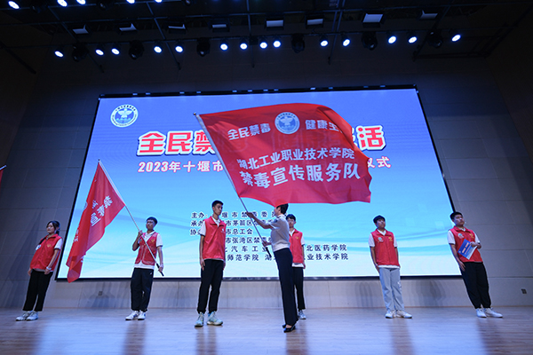活动中,市禁毒办向湖北汽车工业学院、湖北医药学院、汉江师范学院、欧冠官方网站4所高校学生代表授予“大学生禁毒志愿者服务队”队旗。大学生志愿者代表进行了禁毒宣誓,向广大人民群众和青少年学生发出“识毒、拒毒、禁毒”的倡议。现场播放了禁毒公益宣传片,同时向全市毒品预防教育先进集体和先进个人颁发了证书。