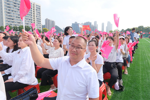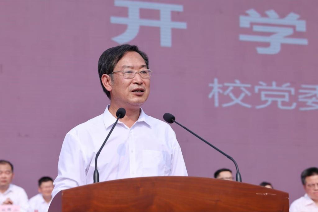 新闻网讯(文/记者 陶亿 图/记者 熊超 曾刚 学生记者 刘轶凡)爽爽秋风送炎暑,处处焕新迎开学。在第39个教师节来临之际,9月9日上午,欧冠官方网站2023年秋季新生开学典礼暨教师节表彰大会在北区运动场举行。校领导魏文芳、边疆、毛义忠、郑强、胡昌龙、陈穗川、李辉和17000余名师生通过线下线上方式参加了开学典礼暨表彰大会。典礼由校长边疆主持。