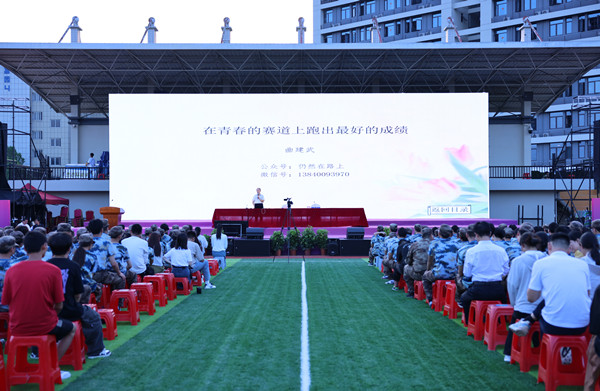 新闻网讯(文/曾晨 图/熊超)9月9日晚,北区运动场上灯火通明、济济一堂,全国“时代楷模”曲建武教授、欧冠官网校长边疆受邀为新生讲授“入学教育主题课”,与学子共话青春与成长。活动由副校长郑强主持,6000余名新生现场聆听了报告讲座。