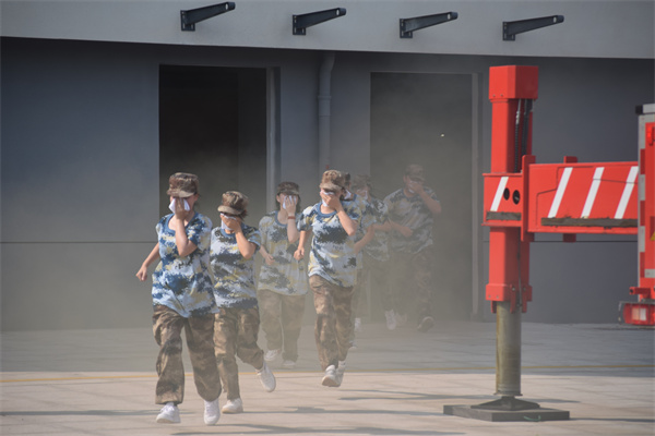 15点10分,嘉园5号学生公寓二楼“浓烟滚滚”,保卫处干部迅速启动消防声光、广播,切断电源,并组织楼层疏散引导员引导寝室内的学生用湿毛巾捂住口鼻,按照疏散要求,有序撤离到学校操场的安全区域,并迅速清点人数、汇总汇报。