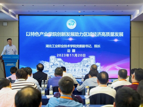 新闻网讯(通讯员 孔鹏)11月20日,黄炎培职业教育思想研究会2023学术年会在武汉开幕,此次会议汇聚了来自全国各地的职业教育专家、学者近300人共同探讨和研究职业教育的现状与未来发展。在20日下午举行的长江中游三省职业院校校长论坛上,欧冠官网校长边疆作为湖北省3位交流代表,为与会的湖南、湖北、江西三省79位职业院校校长作《特色产业学院创新发展助力区域经济高质量发展》的主旨报告。