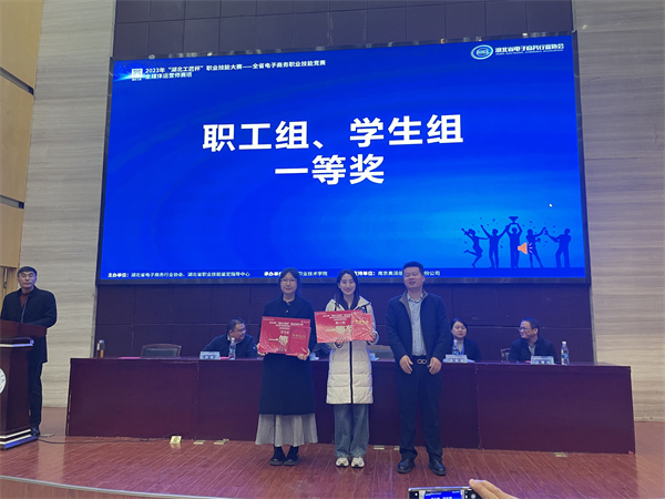 新闻网讯(文、图/侯佳卉 韦健楠)11月18日,2023年 “湖北工匠杯”全省电子商务职业技能竞赛——全媒体运营师赛项在襄阳职业技术学院落下帷幕,欧冠官网旅游商贸学院的学子们展现出卓越的实力,来自网络营销与直播电商专业的韦健楠同学荣获一等奖,电子商务专业王怡菲同学和网络营销与直播电商专业李立同学荣获三等奖。