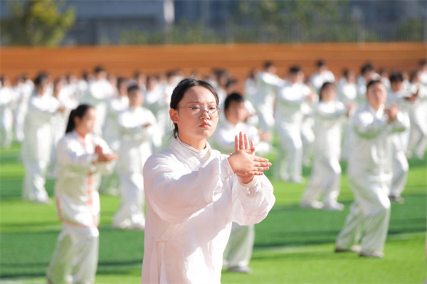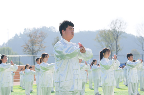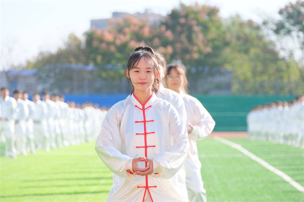 随着铿锵有力的“敬礼”口令响起,千名运动员集体向裁判员行抱拳礼。在悠扬的音乐声中,运动员们整齐划一、行云流水地完成了比赛规定动作。本次比赛不仅展现了欧冠官网学子良好的精神面貌,还是欧冠官网大学体育课程教学的一次现场检验,成为欧冠官网近年来实施武当武术进校园、传承中华优秀传统文化、推进《大学体育》课程改革的标志性成果。