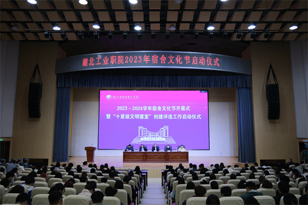 启动仪式上,相关部门负责人解读了《2023-2024学年宿舍文化节暨“十星级文明寝室”创建活动方案》。旅游商贸学院马怡筱同学代表全校学生宣读《韶华如驶宿予流年——“十星级文明寝室”创建活动倡议书》。