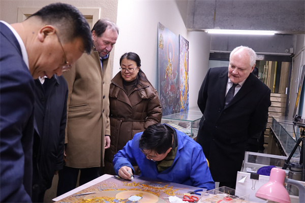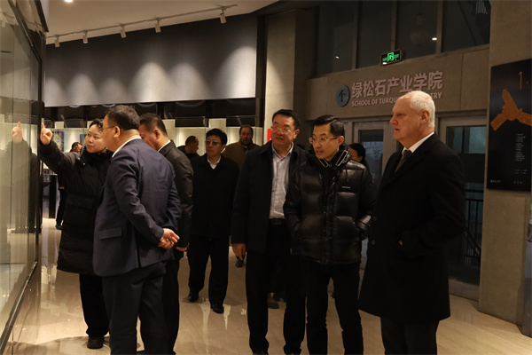 随后,外国专家一行走访了校园,实地考察了学校艺术设计学院及绿松石产业学院,就基地建设、实训内容及未来规划等进行现场交流。