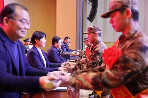 受党委副书记、校长边疆的委托,党委委员、副校长胡昌龙代表学校向即将踏上征程的新兵表示热烈祝贺,向新兵家长表示崇高敬意。他寄语新兵:一要坚定报国志向。积极献身国防、投身军营,树立在军队成长和成才的新观念,自觉把个人成才与国防建设紧密结合起来,将爱国之心化做报国之行,立志在军营建功立业,谱写人生辉煌篇章。二要珍惜锻炼机会。发扬不畏艰苦、不怕牺牲的大无畏革命精神,主动迎接各种挑战,在不断战胜自己的过程中,尽快由学生向合格军人转变,向部队交上一份满意的答卷。三要始终不忘学习。坚持学习习近平新时代中国特色社会主义思想,学习习近平强军思想,把学习当作一生的追求,并通过学习将获得的知识转化为能力,把能力转化为战斗力。