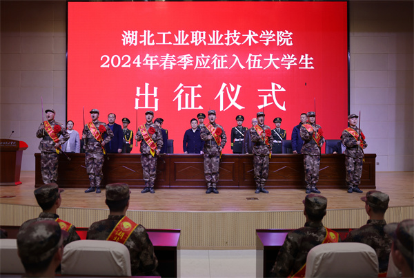 新闻网讯(文/张万全 图/熊超)携笔从戎志高远,不负韶华从军行。3月14日下午,学校2024年春季大学生新兵入伍出征仪式在会议中心举行。校党委委员、副校长胡昌龙,党政办、纪委监察室、就业指导中心、党委学工部(武装部)、校团委等部门负责人及各二级学院党总支书记、副书记、辅导员、学生代表,即将奔赴军营的36名新兵及亲属参加欢送仪式。