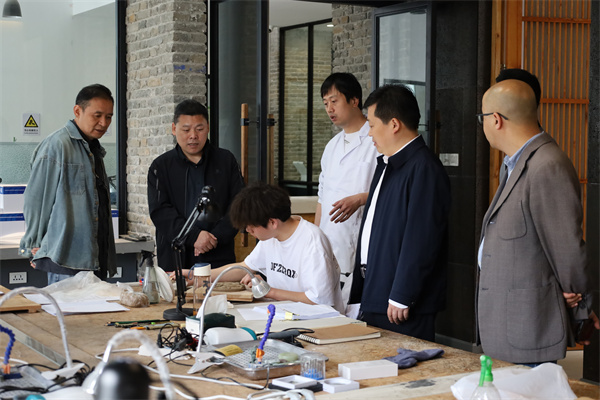 徐维洲一行沿知行大道、天问路、樱花长廊参观了校园,并实地考察了欧冠官网艺术设计学院(绿松石产业学院),学校相关部门负责人、校企合作企业负责人、技能大师介绍了欧冠官网社会科学普及、特色产业学院建设的经验做法及成效。