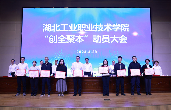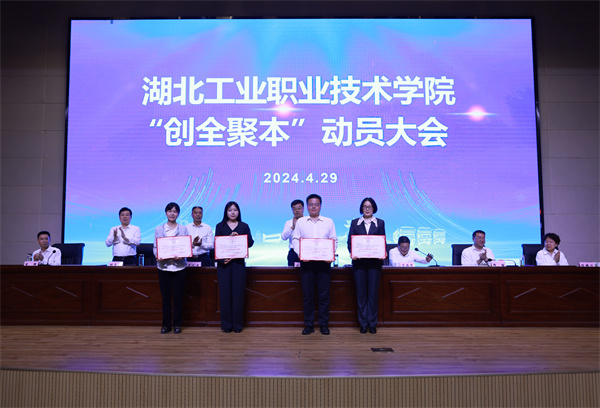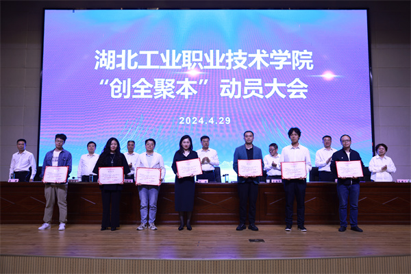 与会校领导为全省党建工作样板支部、全省平安校园建设工作成绩突出的两个集体代表,全国教师教学能力大赛获奖个人、全国职业院校技能大赛获奖指导老师、“互联网+”大学生创新创业大赛国赛获奖指导老师、全国“三下乡”实践示范团队指导老师、“创青春”青年创业大赛优秀奖指导老师、校联会“金课”“金师”团队负责人、“一校一课”展示活动课程负责人、2023年湖北省职业院校技能大赛获奖个人和指导老师、湖北省技能大师工作室负责人、湖北省技术能手、第一届全国大学生职规大赛指导老师、湖北省职业生涯咨询特色工作室负责人、2023年暑期“三下乡”社会实践活动优秀团队指导教师,以及2023年招生工作中取得突出成绩的集体和个人颁发了奖牌和荣誉证书。