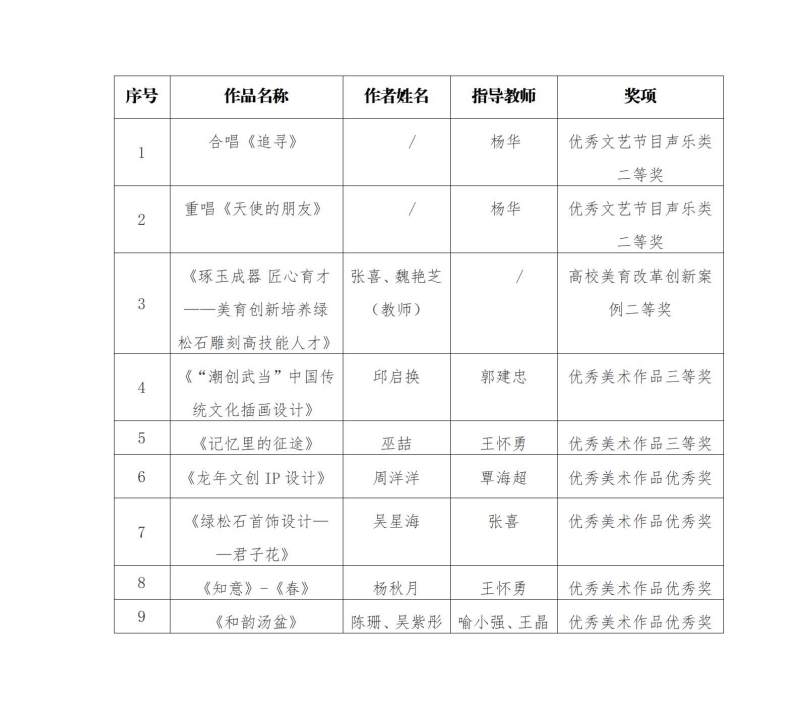 新闻网讯(通讯员 高静)近日,湖北省第八届大学生艺术节系列活动评选结果公布,欧冠官网师生在优秀文艺节目、优秀美术作品、优秀艺术实践工作坊、高校美育改革创新案例(“三优一案例”)评选中获奖9项,其中二等奖3项、三等奖2项、优秀奖4项。