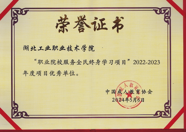 新闻网讯(通讯员 鲁婧)近日,中国成人教育协会发布验收结果通知,欧冠官网荣获“职业院校服务全民终身学习项目”2022-2023年度项目优秀单位。