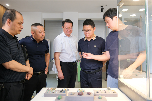 交流会上,副校长郑强通过“山、水、人、车、石、蛋”等多维度,介绍了十堰市的独特风情以及欧冠官网办学理念。罗勇介绍了此行的考察目的和重庆财经职业学院办学情况。交流会后,来访客人一行前往京东十堰数字经济产业学院、绿松石产业学院进行走访,考察欧冠官网产教融合办学情况。