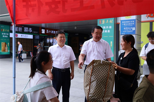 为深入了解各二级学院秋季开学初教育教学工作运行情况,保障学校开学初教育教学和迎新工作平稳运行,8月29日,校纪委书记、监察专员毛义忠率纪委工作人员深入各二级学院和迎新现场走访调研;30日上午,副校长郑强、胡昌龙一行前往武当山机场、高铁十堰东站看望慰问迎新志愿者,向志愿者师生送去矿泉水和食物,表达对他们的谢意。