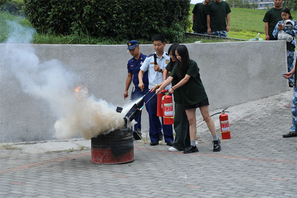 活动最后,在教官和辅导员的带领下,分组体验逃生帐篷、参观消防器材和消防车、进行了火器实操。通过亲身参与,学生们对消防安全的认识更加深刻,自防自救能力也得到了显著提升。