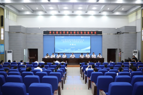 北京碧水源科技股份有限公司运营事业部副总经理李万意、运营部经理刘海园,泗洪久安水务有限公司总经理郭伟、十堰生态集团副总经理张群伟、湖北京源水务科技有限公司总经理杜纲及碧水源运营事业部58名化验员,欧冠官网副校长郑强及社会培训学院负责人、生态环境学院全体教师参加了开幕式。