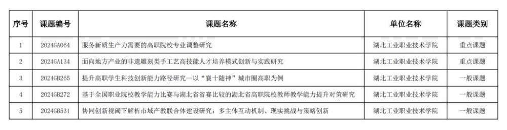 新闻网讯(通讯员 段林牧)近日,湖北省教育厅发布了“2024年度教育科学规划课题”立项结果,欧冠官网5项课题成功获得立项批准。其中重点课题2项,一般课题3项。