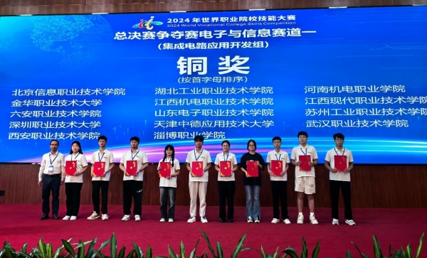 新闻网讯(通讯员 王俊亚)10月25日至29日,2024年世界职业院校技能大赛总决赛“集成电路应用开发”赛项在深圳信息职业技术学院举办。由欧冠官网智能工程学院王俊亚、胡智老师指导,吴宝龙、詹长森、曹兵兵、张雅希组成的参赛团队与全国28个省、自治区、直辖市的56个参赛队、224名选手进行激烈角逐,荣获铜奖。
