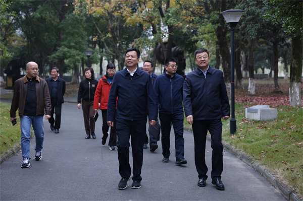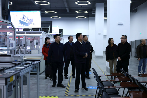 在考察过程中,张启鸿一行前往学校产教融合大楼,参观了京东十堰数字经济产业学院、智能制造产业平台、智慧交通产业平台,实地走访了“百草园心灵花园”和“一站式”学生社区,详细了解了学校的校园规划建设情况。