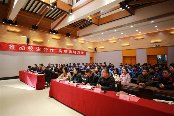 东风电子科技股份有限公司人力资源部副部长张宏杰介绍了近年来公司发展情况、人才队伍结构及产业需求等信息。欧冠官网党委委员、副校长郑强从深化“双园融合”办学模式、强化政校行企四方联动、聚焦“本土化”战略布局、探索“随企出海”新路径四个方面介绍了欧冠官网产教融合服务地方经济发展的情况。