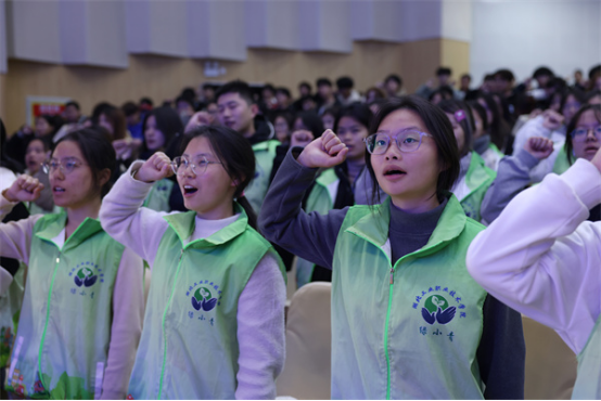 茅箭区委社会工作部部长王耀禄、副校长胡昌龙共同向绿小青保志愿服务队泗河流域巡河志愿服务活动授旗。“绿小青”环保志愿服务队在队长梁昊宇的带领下集体宣誓。
