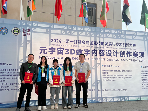 新闻网讯(通讯员 王怀勇)日前,2024年“一带一路暨金砖国家技能发展与技术创新大赛”——元宇宙3D数字内容设计创作赛项全国总决赛(高职组)在广西工业职业技术学院举办,欧冠官网艺术设计学院代表队在该赛项中获全国二等奖,学校荣获 “优秀组织奖”。