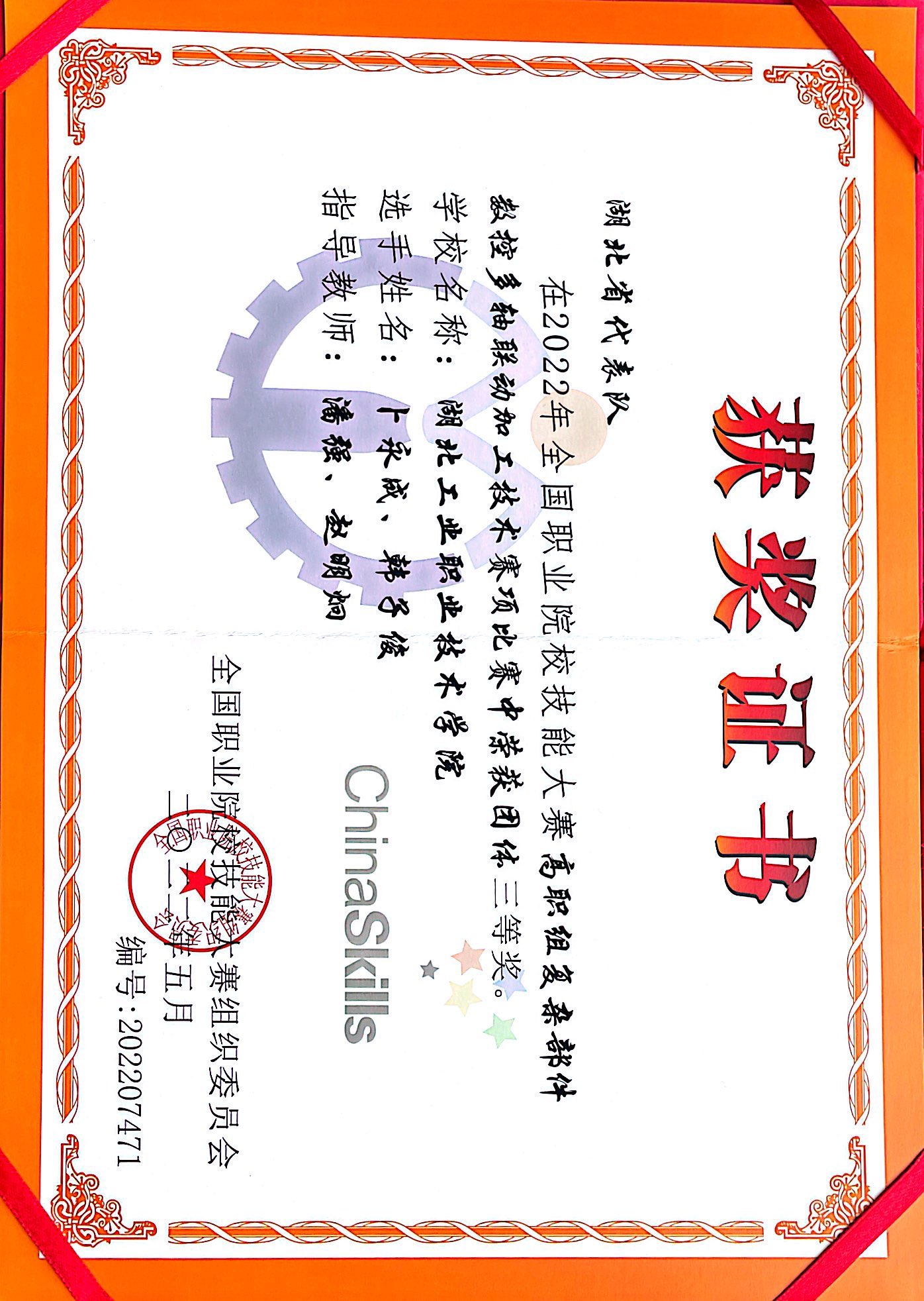 2022年7月,在全国职业院校技能大赛高职组复杂部件数控多轴联动加工技术赛项比赛中,欧冠投注官网入口代表队荣获团体三等奖。
