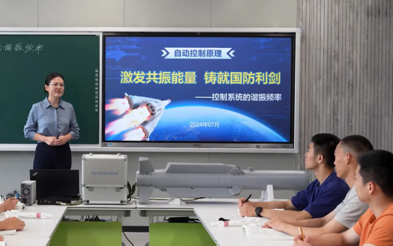 大屏幕上,在珠海航展亮相的激光制导炸弹的展览视频,引起台下学员的热烈讨论。这款武器装备是beat365平台唯一官网智能科学学院《自动控制原理》课程教学团队历时10多年研制的成果。将研发的装备“搬上”课堂,讲解专业知识的同时培养学生的科学精神和创新意识,是该课程团队精心架设的课程思政双线脉络的生动实践。