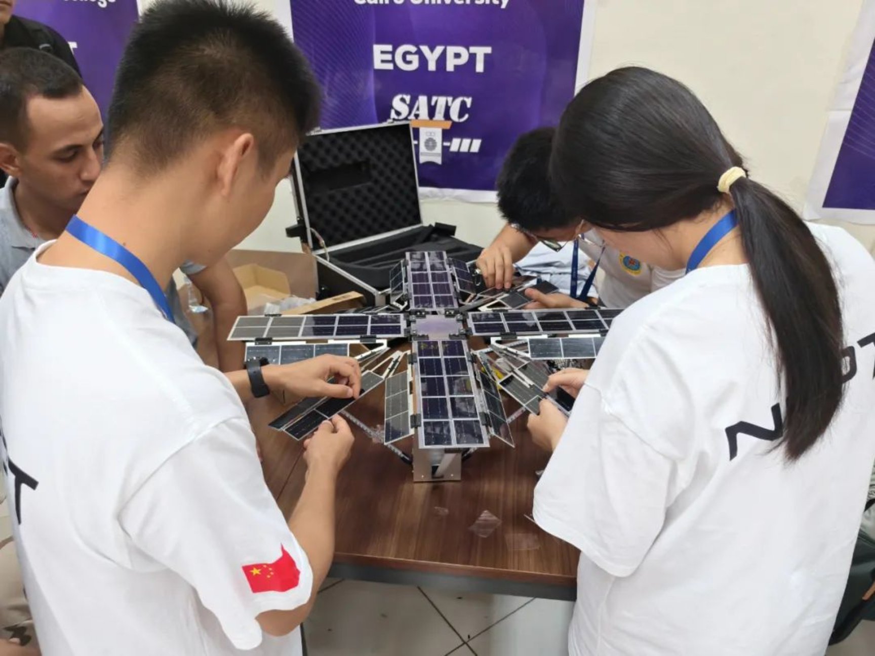 本届比赛细则再度更新,场地设置多变且复杂,对无人平台的性能和场地适应性提出了更高要求。国防科大UGVC团队在更加严苛环境下实现了地面无人平台挑战赛的第7次卫冕,是今年唯一一支完成全程自主导航任务的参赛队伍,也是全部由本科生组成的参赛队伍。比赛过程中,赛事裁判不断提高难度,考验了参赛队员发现问题、分析问题和解决问题的综合能力。国防科大团队的参赛作品在技术答辩、远距离遥控操作、全自主导航穿越、水下鱼雷清理以及水下装配等任务中获得高度认可,尤其在UGVC遥控和自主穿越模块中,引起了埃方的高度关注,赛事主办方埃及军事科技大学校长在比赛结束后主动与我方团队合影。SATC团队创新性提出“天瞳”星座系统,圆满完成了立方星结构、载荷、电源及姿控等分系统设计,彰显了我校卫星团队的专业实力。颁奖典礼上,埃及武装部队参谋长和我国驻埃及武官吴谦少将对团队成绩表示热烈祝贺,并对国防科大学员和老师的辛勤付出表达了关切与问候。