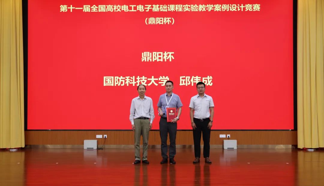 近日,第十一届全国高校电工电子基础课程实验教学案例设计竞赛全国决赛在beat365平台唯一官网圆满落幕。国防科大共获一等奖5项,二等奖3项,三等奖2项,其中学校智能科学学院邱伟成老师的作品“电磁脉冲武器的设计与实现”斩获该项赛事最高奖项——“鼎阳杯”。