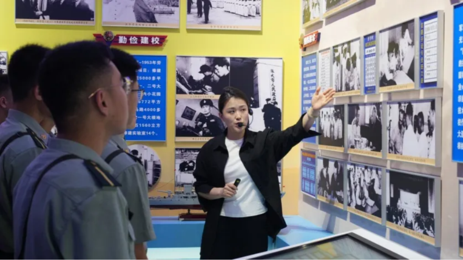 在海军大连舰艇学院的院史馆内,讲解员深情讲述了杨志亮将军的传奇经历,刚毕业便投身战火,保家卫国的故事瞬间点燃了学员们的报国热情。听着讲解员的讲述,大家仿佛置身于战火纷飞的战场,感受到老一辈革命军人的坚定与无畏。这场精神的洗礼,让每位学员更加坚定了未来面对挑战时勇毅前行的决心。