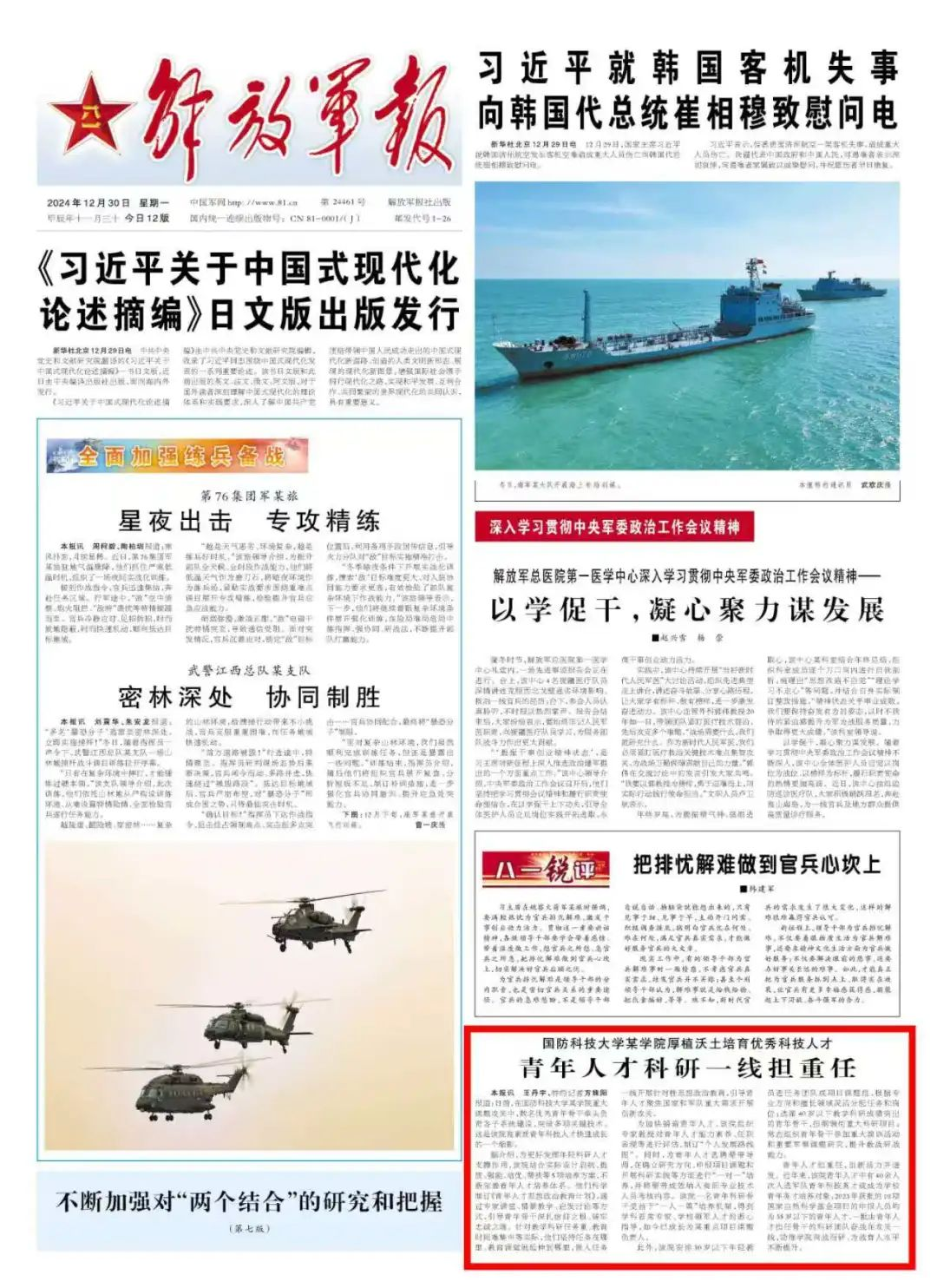 本文刊于12月30日解放军报01版