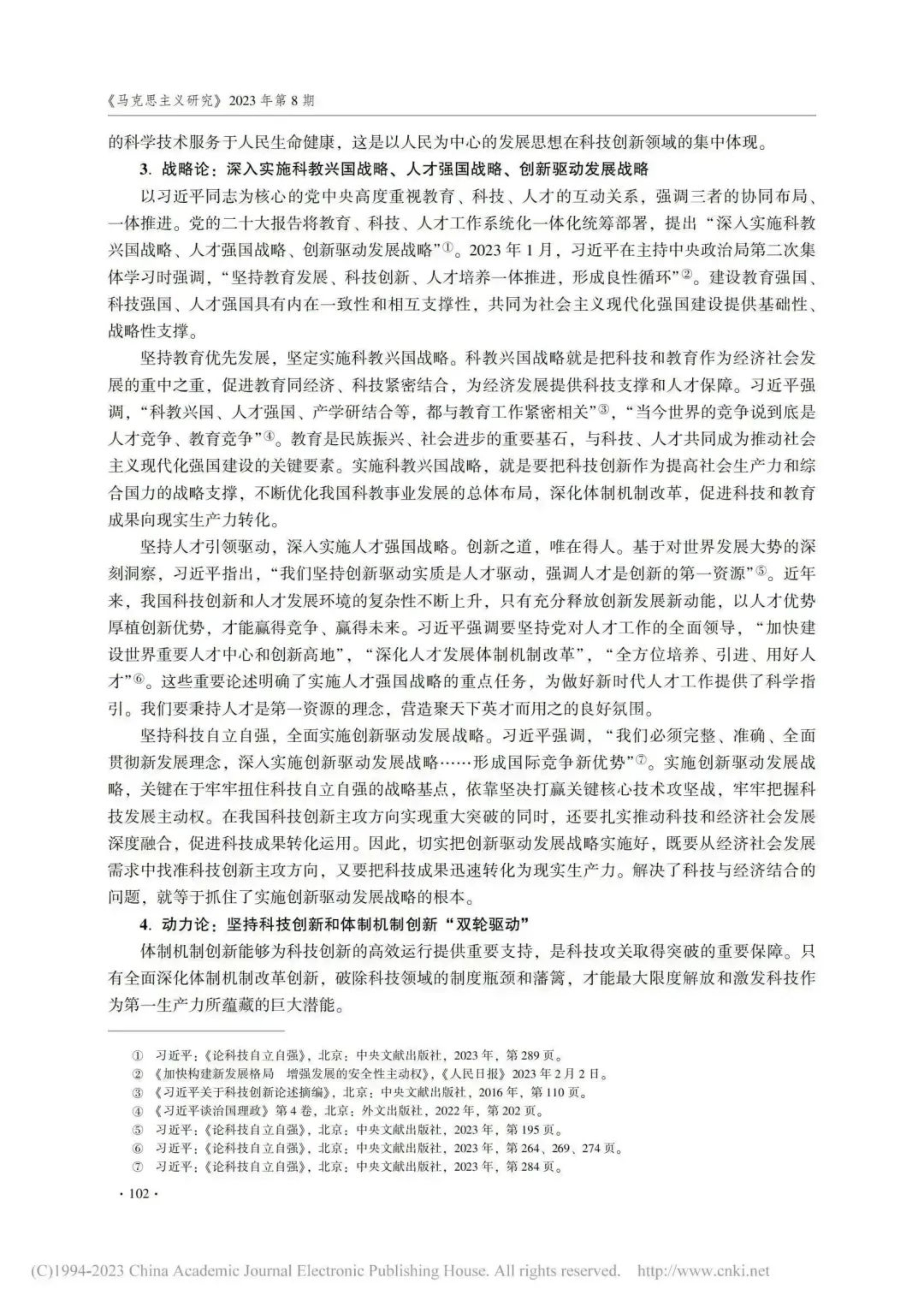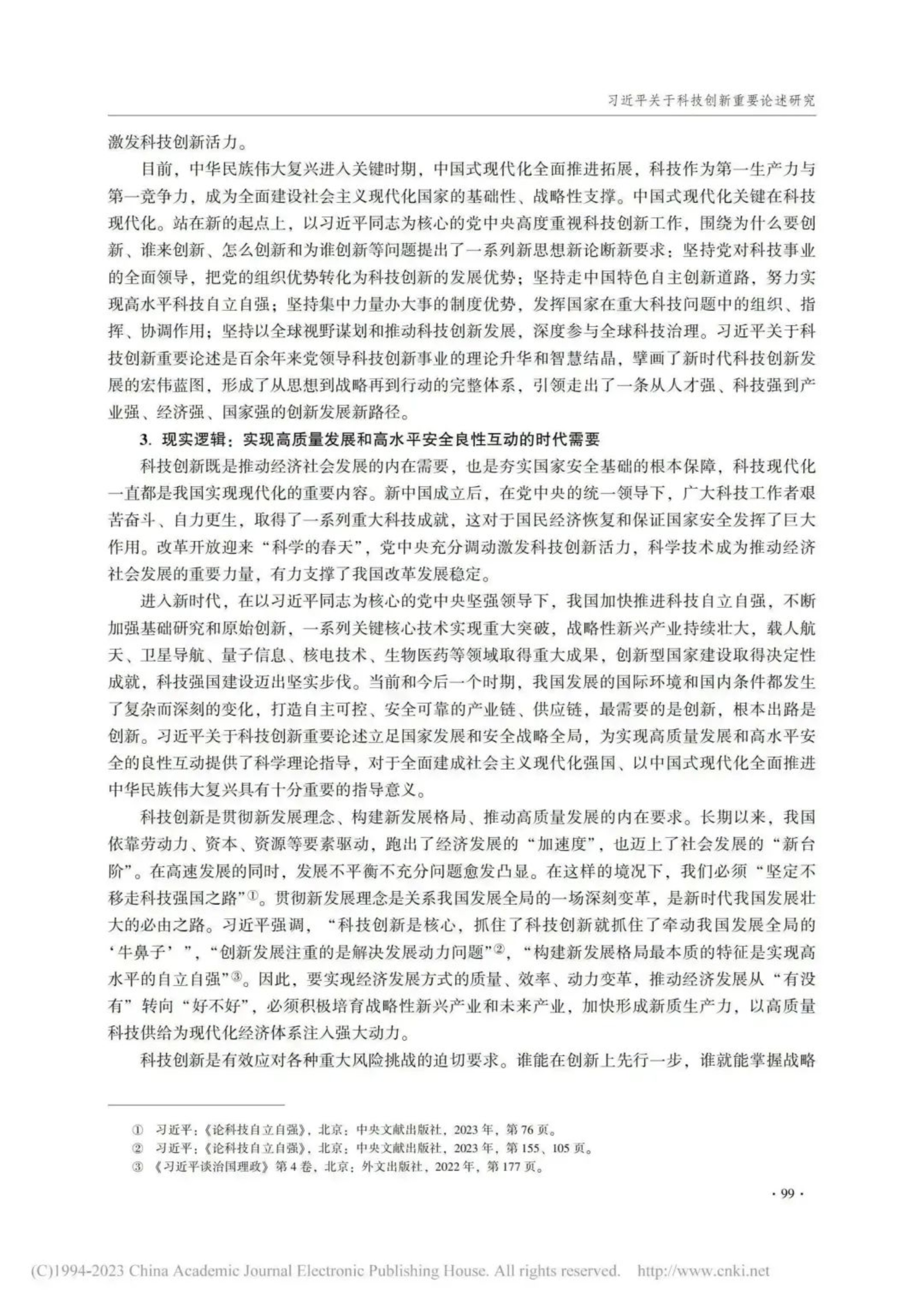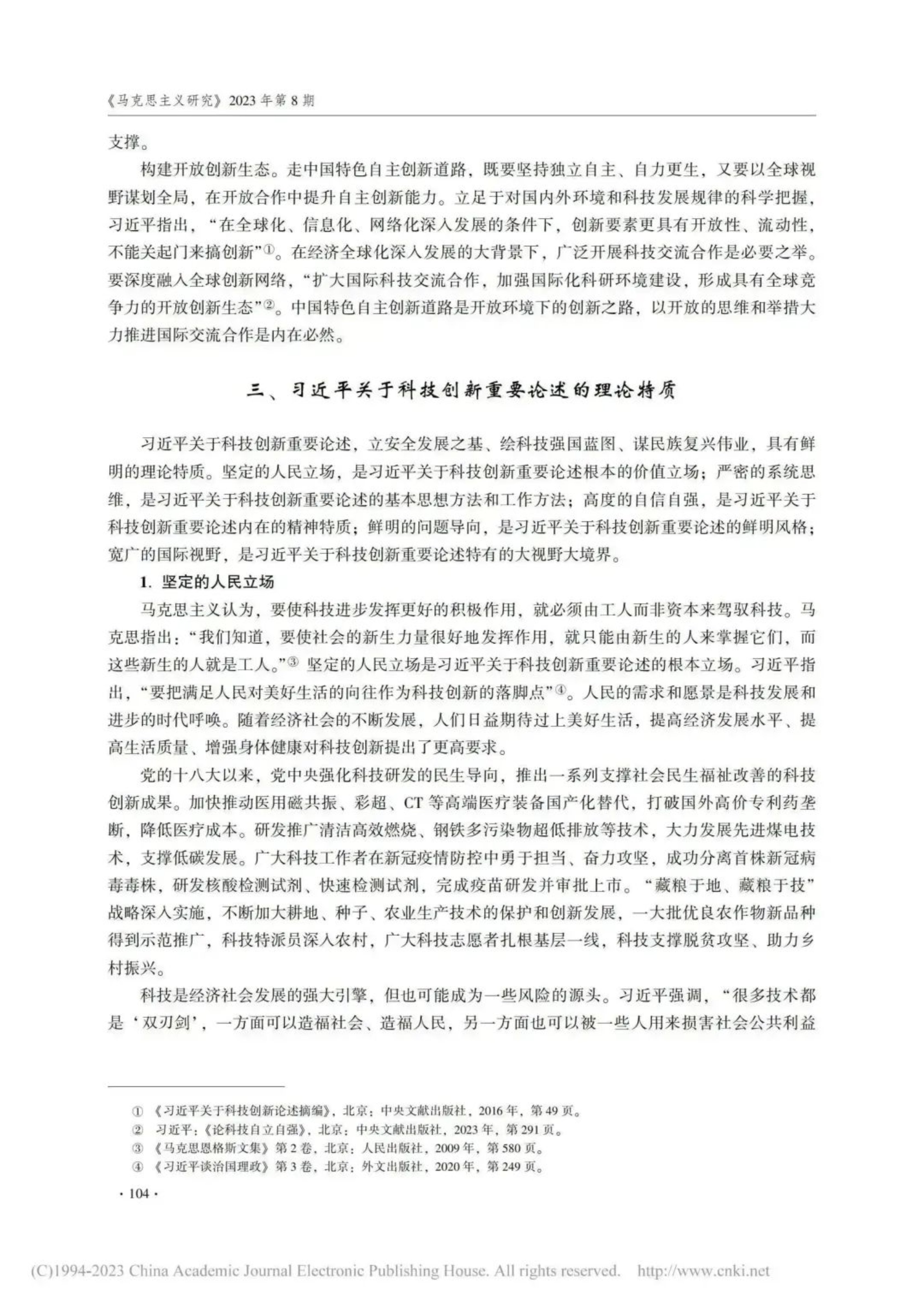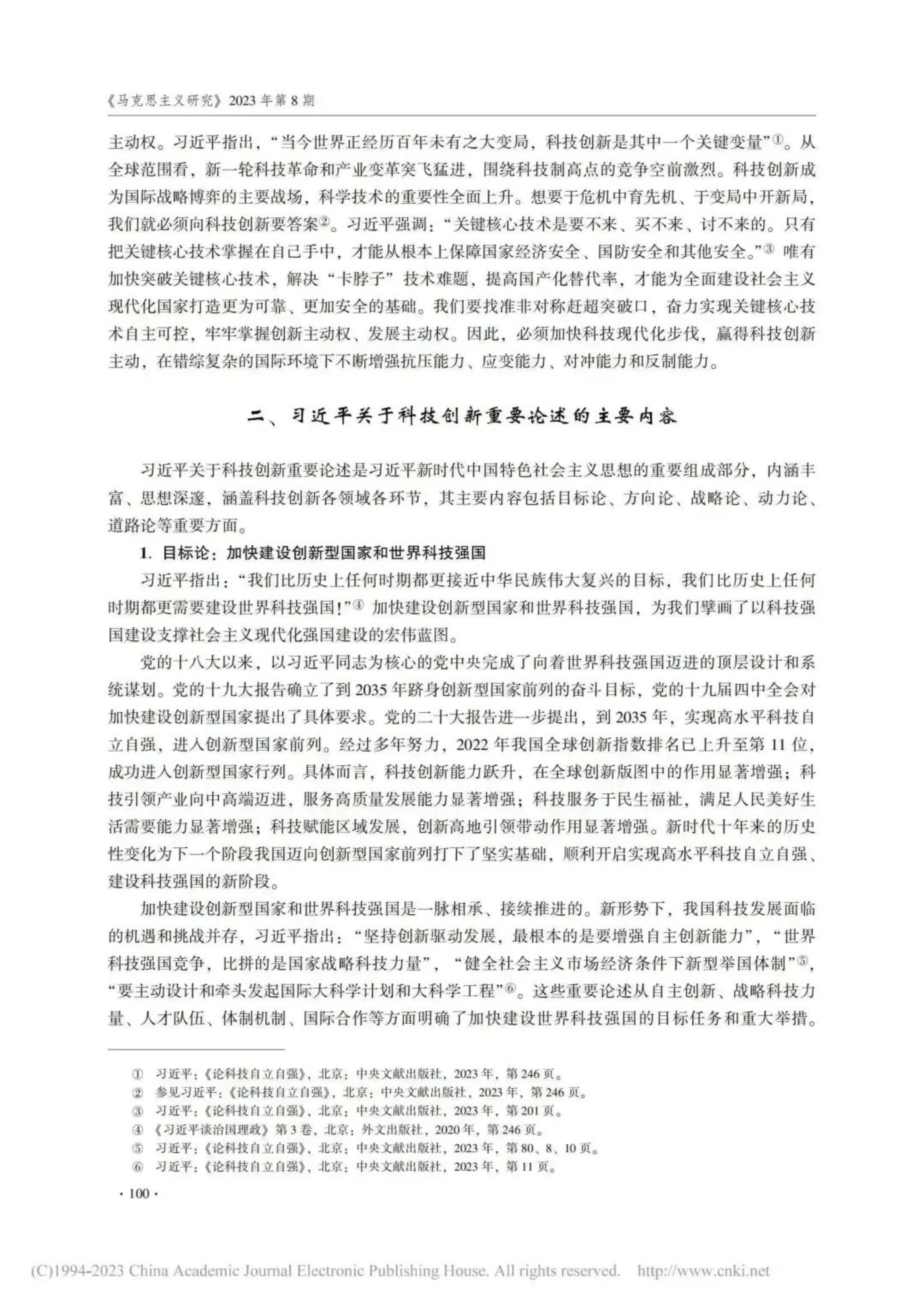 科技立则民族立,科技强则国家强。文章认为,党的十八大以来,习主席立足国家安全和经济社会发展全局,深刻分析、科学研判、准确把握当代科技创新发展规律,提出一系列新思想、新观点、新论断、新要求,对我国科技创新作出前瞻性、战略性、全局性谋划,引领我国科技事业实现了历史性、整体性、格局性重大变化。习主席关于科技创新重要论述,具有深刻的理论逻辑、历史逻辑和现实逻辑,内涵丰富、思想深邃,其主要内容包括目标论、方向论、战略论、动力论、道路论等重要方面,具有坚定的人民立场、严密的系统思维、高度的自信自强、鲜明的问题导向和宽广的国际视野等理论特质。